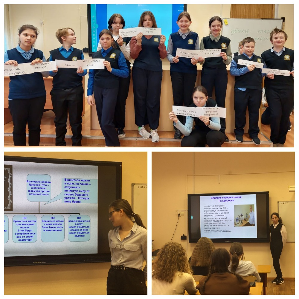 На классных часах говорили об отрицательном влиянии сквернословия на внутренний мир человека. Ребята узнали о значении и месте родного языка в развитии личности, а также изучили историю появления феномена. Важным пунктом обсуждения стал вопрос ответственности за использование ненормативной лексики.