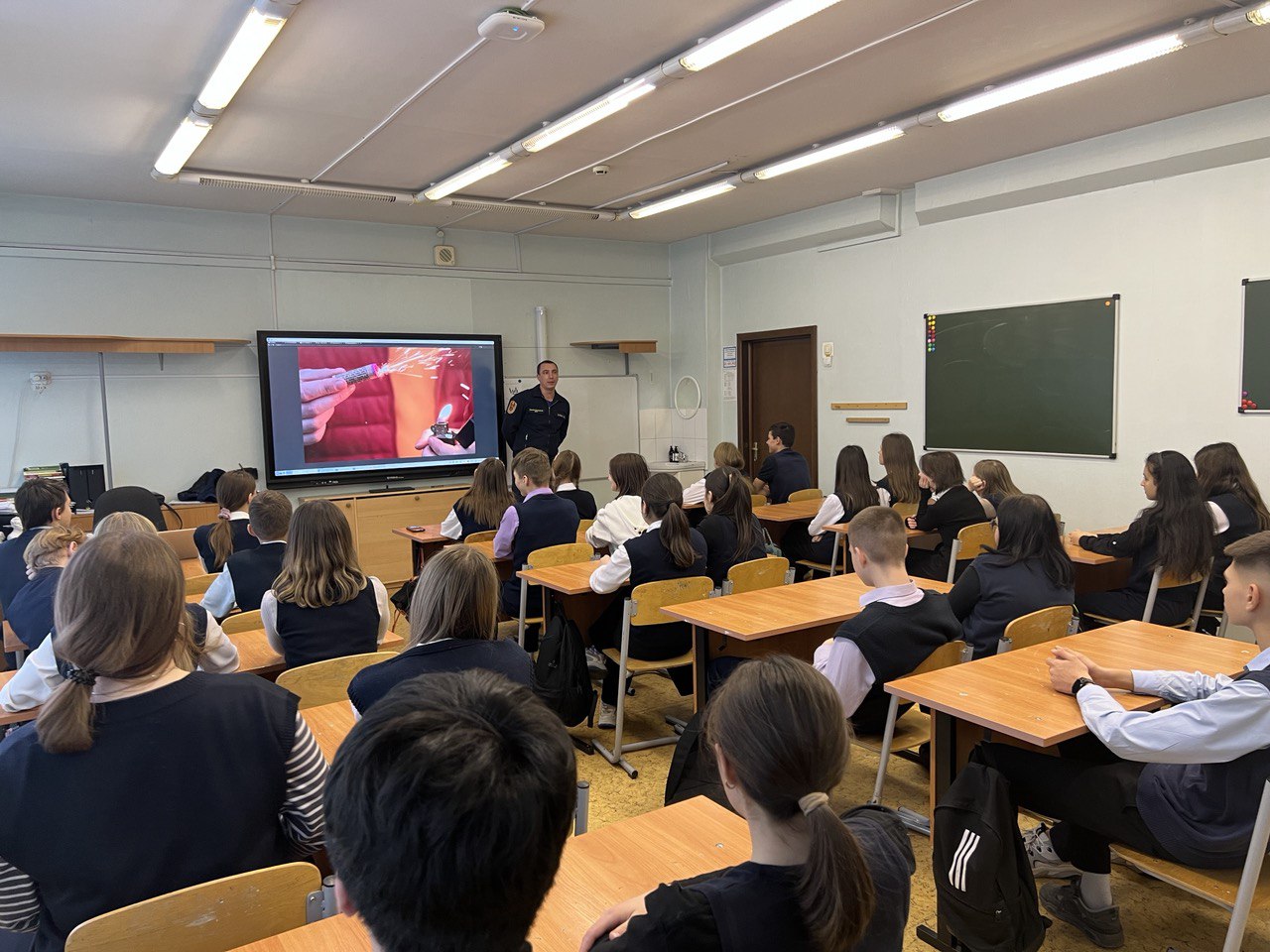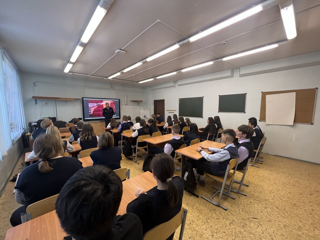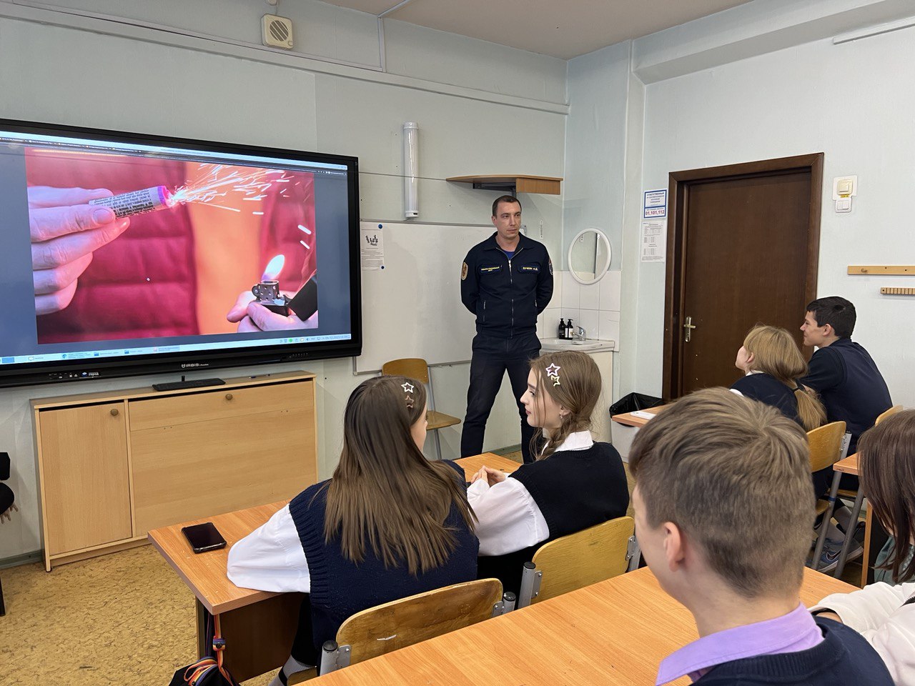 Заместитель начальника пожарно-спасательного отряда №215ГКУ ПСЦ по профилактической работе - Андрей Дмитриевич Лучкин, провел с учениками нашей школы профилактические беседы.