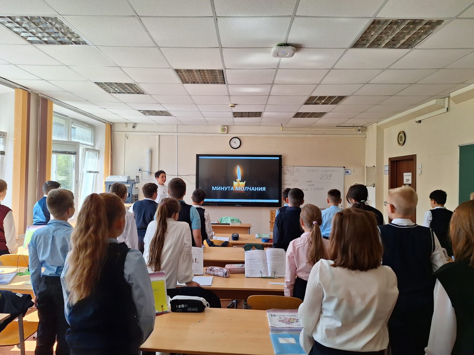 Во всех корпусах школьного звена со 2 по 11 классы проводились классные часы. Акция Минута молчания», посвященная памяти жертв, павших от рук террористов. Прошла радиолинейка «Терроризму скажем - Нет!». Участники мероприятия вспомнили о трагических событиях, произошедших 01 сентября 2004 года в школе № 1 города Беслана. Была проведена акция «Белые журавли». Учителя обществознания, среди обучающихся 8-11 классов, провели беседу на тему: «Вовлечение несовершеннолетних в диверсионную деятельность». На уроках ОБЖ ребята решали ситуационные задачи, направленные на разработку алгоритма действий при угрозе террористического акта (9-11 классы) и разрабатывали памятку «Безопасное поведение в чрезвычайных ситуациях» (8 классы).