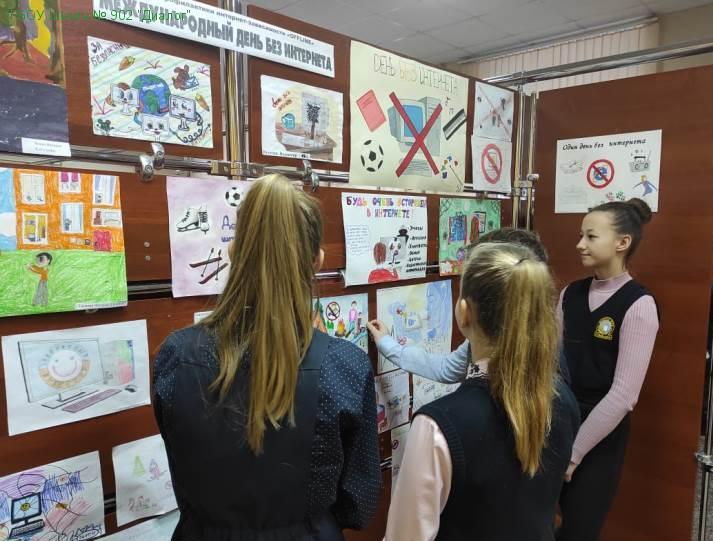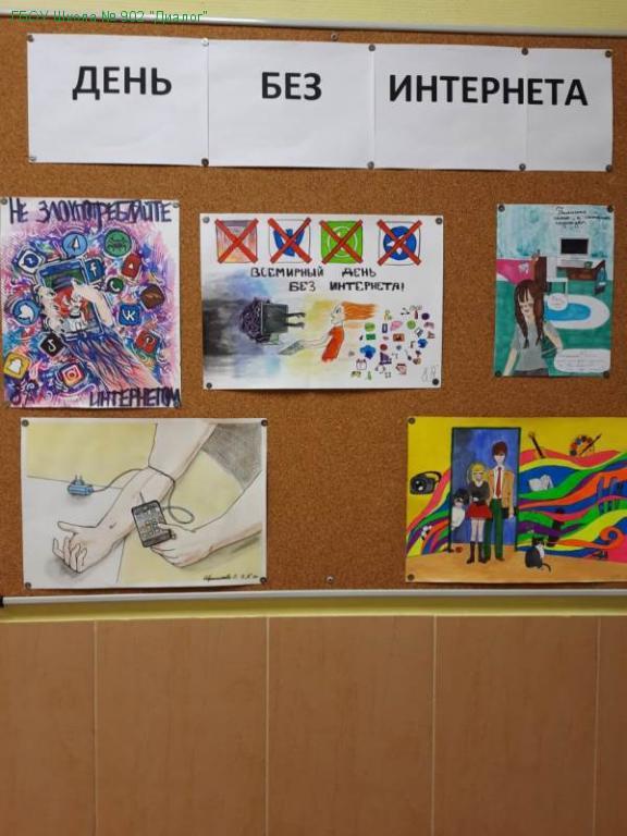 - в зданиях школы организован конкурс рисунков «Компьютерные сети» и «День без Интернета», в котором приняли участие учащиеся 2-9 классов. В фойе первого этажа была организована выставка, где все ребята познакомились с детскими работами.